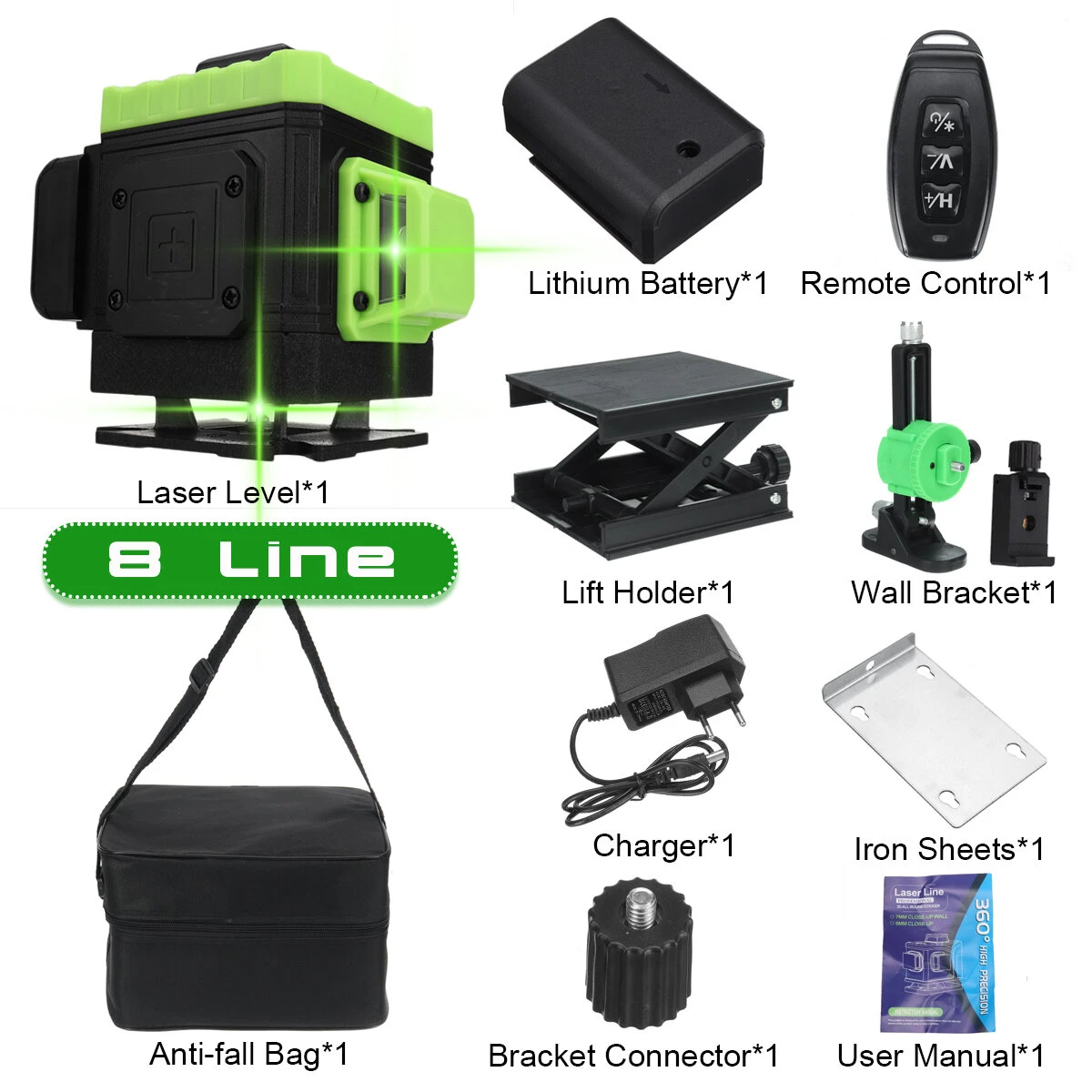 Be the first to review “16/12/8 Line 4D 360° Horizontal Vertical Cross Green Light Laser Level Self-Leveling Measure APP Control” Cancel reply