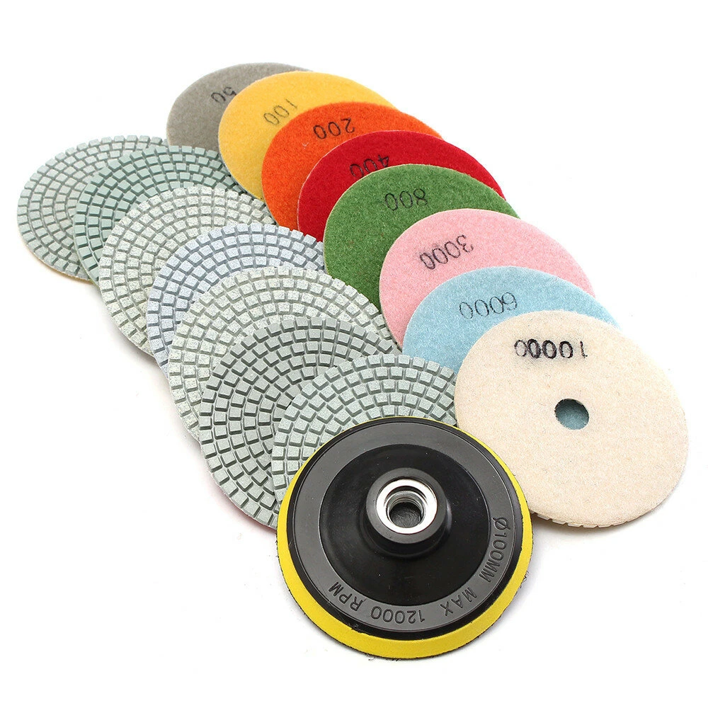 16pcs 4 Inch 50 to 10000 Grit Diamond Polishing Pads for Granite Stone Concrete Marble