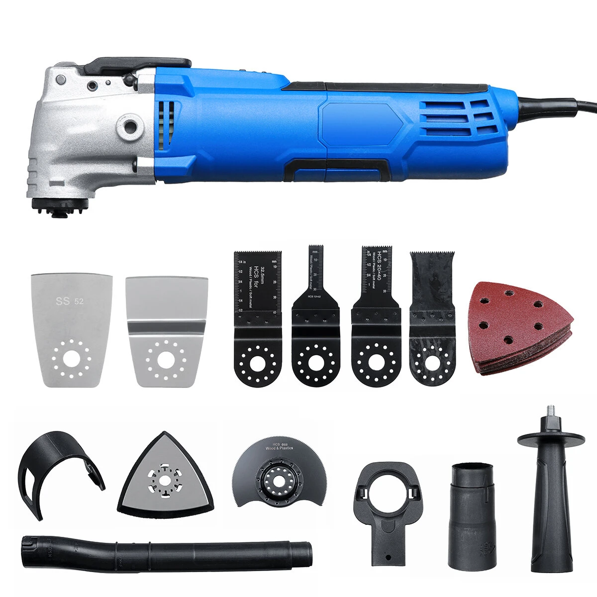 | 1 x Electric Saw Renovator Tool 1 x Scimitar blade 1 x Straight blade 1 x High carbon steel saw blade (32.5mm) 1 x Bimetal saw blade (20x40mm) 1 x Precision tooth saw blade (10x40mm) 1 x High carbon steel saw blade 1 x Triangle alloy grinding disc 1 x Semi-circular alloy grinding disc 1 x Handle 1 set Accessory kit 15 x Sandpaper |
