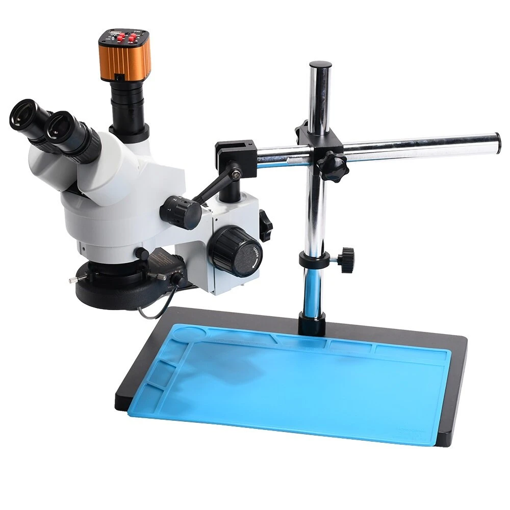 3.5~90X Zoom Magnification Stereo Microscope 16MP Camera Microscope For Industrial PCB Repair Sturdy All-metal Pillar Stand Powerful 56-LED Ring Light