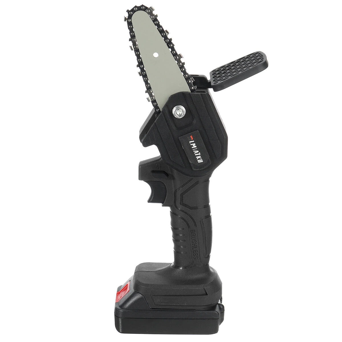 ● Rechargeable electric chain saw, light and portable, long battery life, and will not damage the bark. ● Lightweight body, lightweight and convenient, lightweight design, long-time holding without fatigue of hands. ● Pure copper motor, strong power, fast cutting speed, improve efficiency. ● Practical, fast, and low power consumption. ● High-quality switch, speed adjustment, stepless speed change. ● Intelligent circuit control board, overload protection, to meet your different construction needs. ● The special guide plate and tungsten steel ball do not need to be lubricated, so the machine can reduce the resistance during operation and reduce the wear of the machine. ● It is compact and can be held with one hand. ● High-quality guide chain, deep quenching, more wear-resistant, smooth cutting.