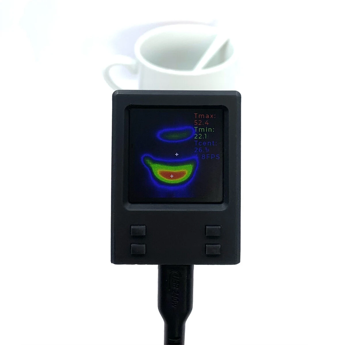 TIP is a portable thermal imager. It is based on a 32×32 resolution infrared thermal imaging array sensor, supporting 6 types of color palettes; Support for saving screenshots locally, allowing for browsing locally or managing downloads, deletions, and more using built-in file servers through the network; Supports WiFi connection and allows you to browse infrared and visible light camera videos on the local area network through a web browser.