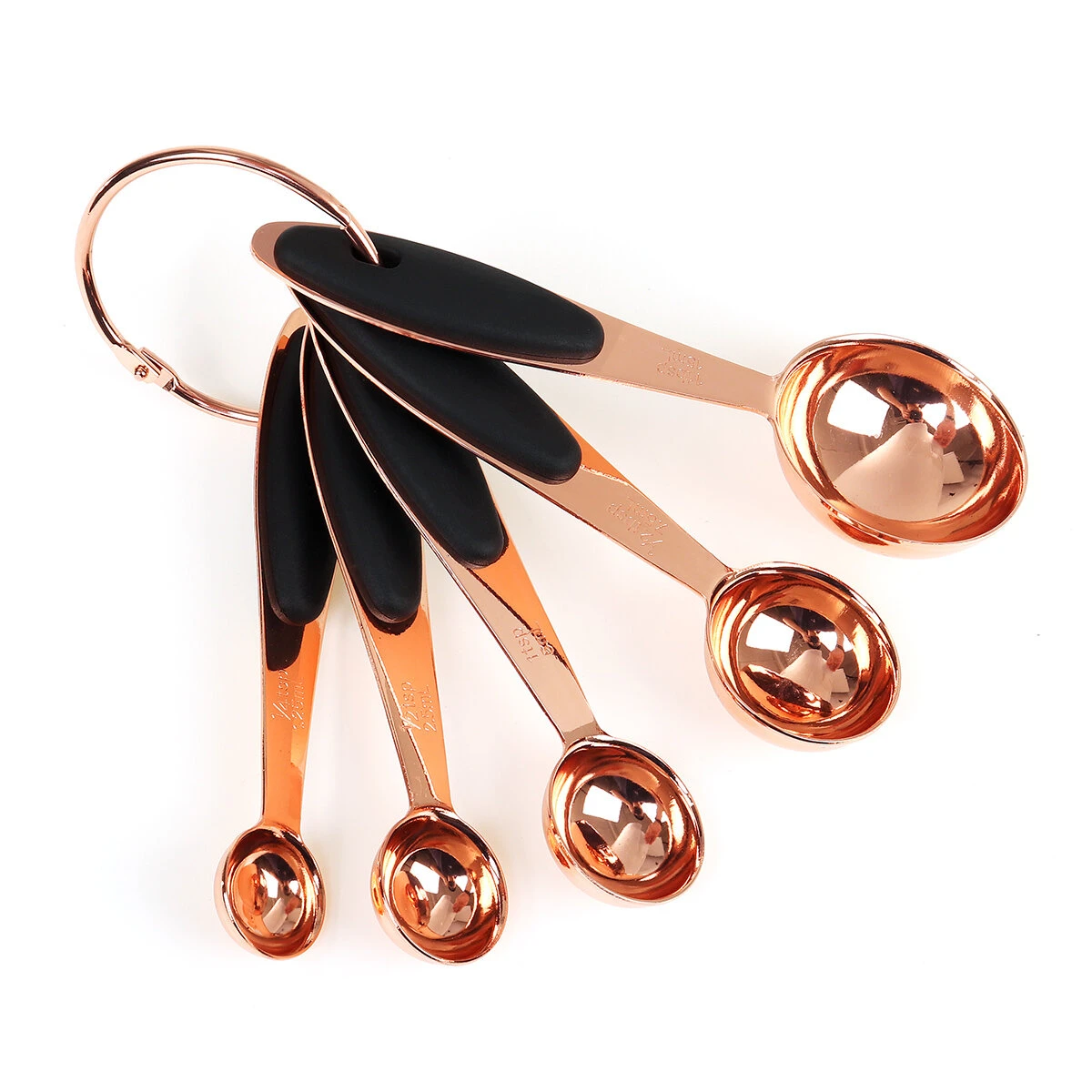– KITCHEN MEASURING SET: This set of 5 measuring cups or 5 measuring spoon are made of stainless steel with copper coating, rust resistant, corrosion resistant and shatter-proof.