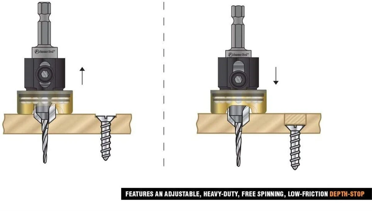 Precise Control: The adjustable depth-stop and independent stop collar prevent marking of the workpiece and allow for perfect countersink depth control.