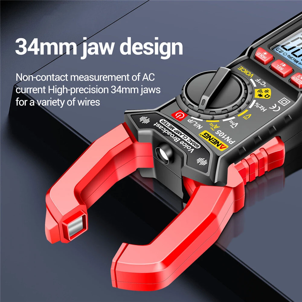 3. Non-contact induction measurement of AC current is safer, high-precision induction 34mm jaw is applicable to a variety of wires
