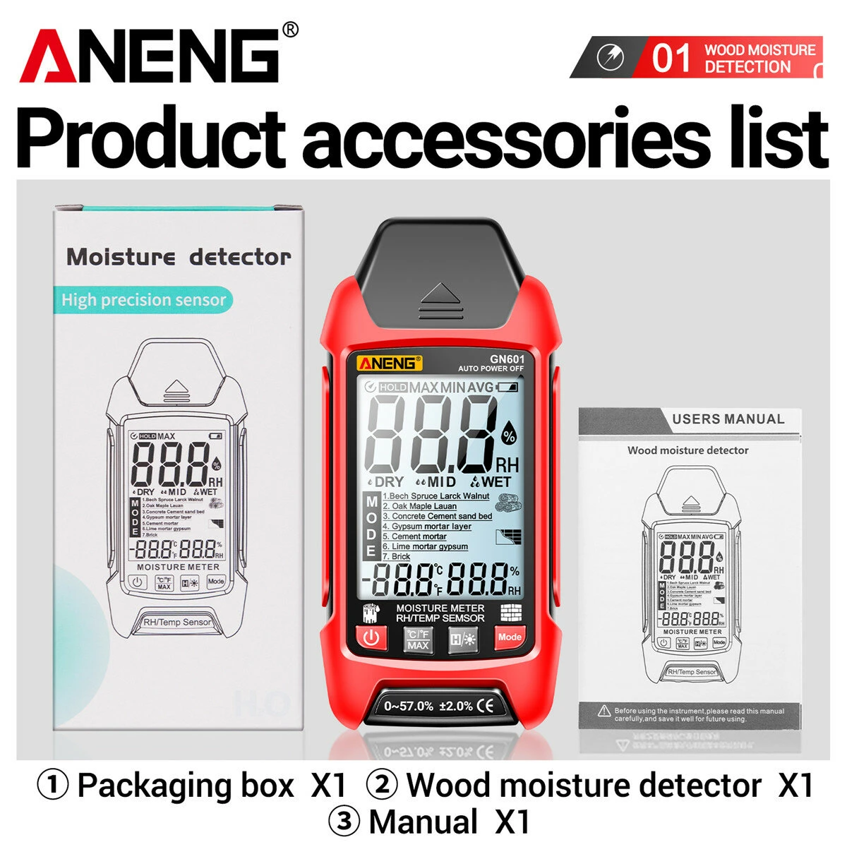 0~99.9% Timber Hygrometer 20.5% RH Numerical Display Wood Moisture Meter Multiscene Measurement Temperature Humidity Meter Probe