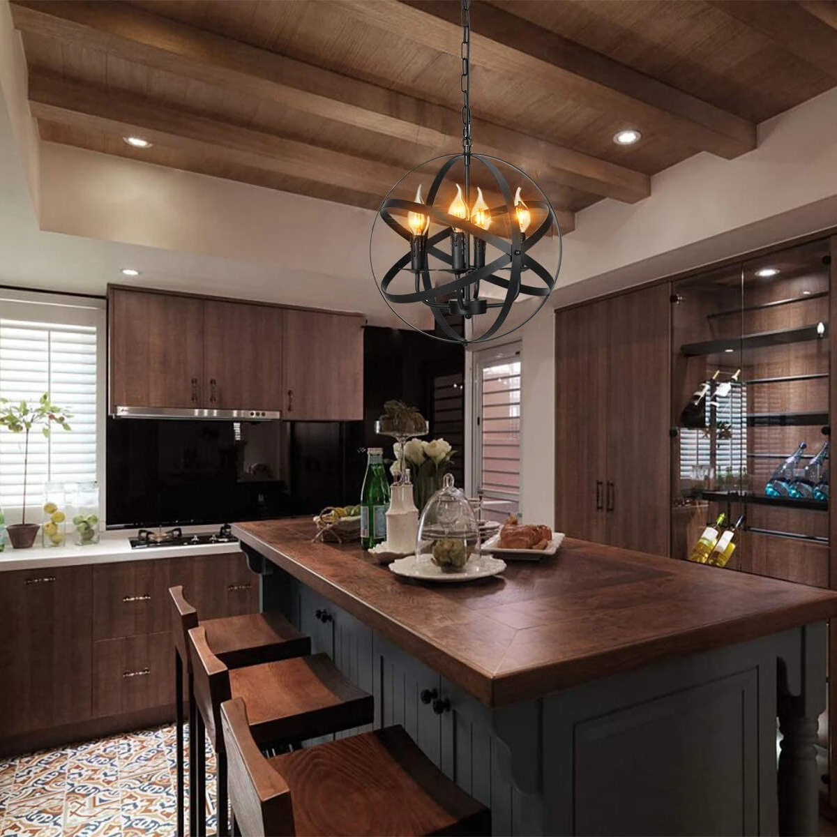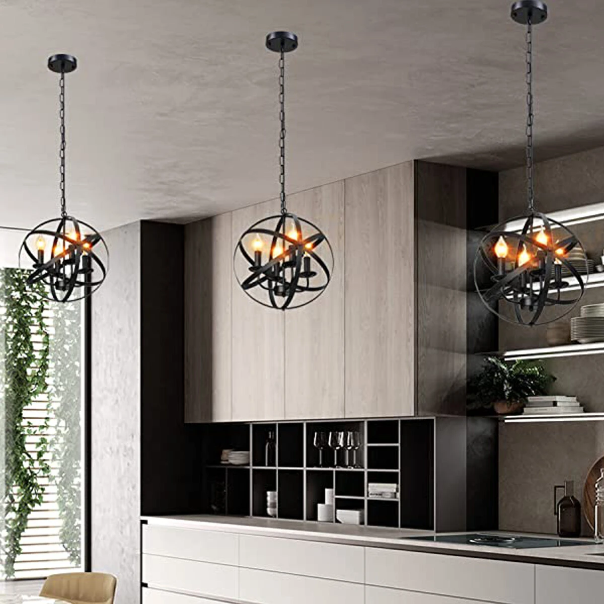 2. Perfect size hanging in kitchen island, dining room, farmhouse, foyer. The vintage spherical hanging light fixture can be hung from a sloped ceiling.