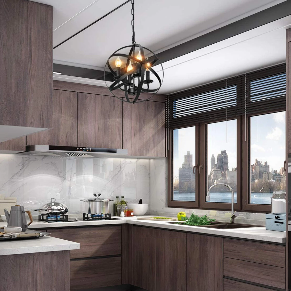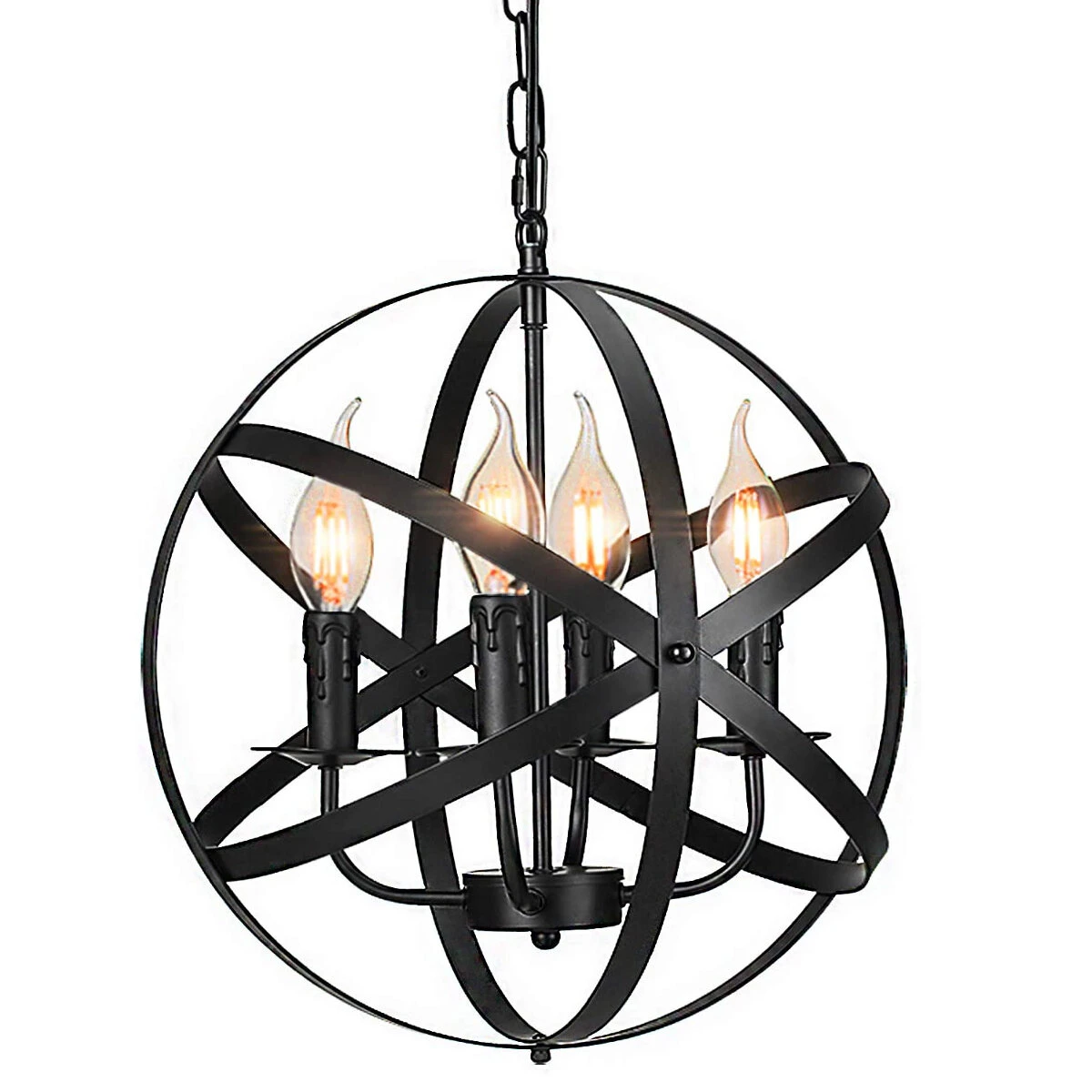 1. 4 Light industrial pendant lighting is retro industrial design with elegant black spherical shade, geometric aesthetic and exquisite.