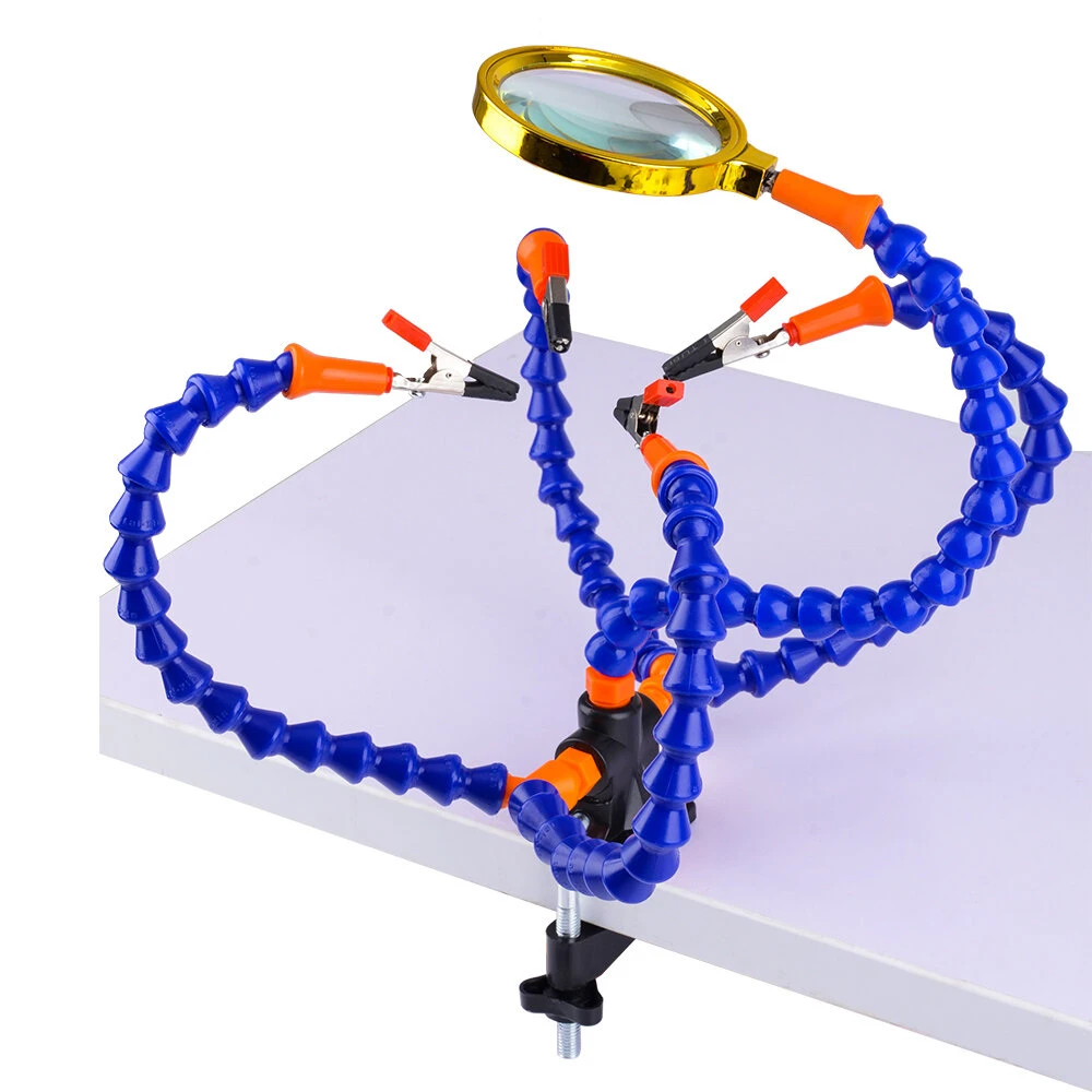 Bench Vise Table Clamp Soldering Station With 5Pc Flexible Arms Soldering Iron Holder Pcb Welding Repair Third Hand Tool