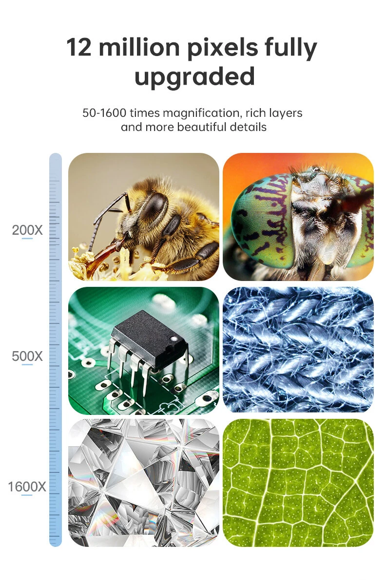 Digital Microscope 1600X 12MP Camera Sensor Coin Microscope 7″ Touch LCD Microscope with Wired Remote 28 LED Fill Lights For PC