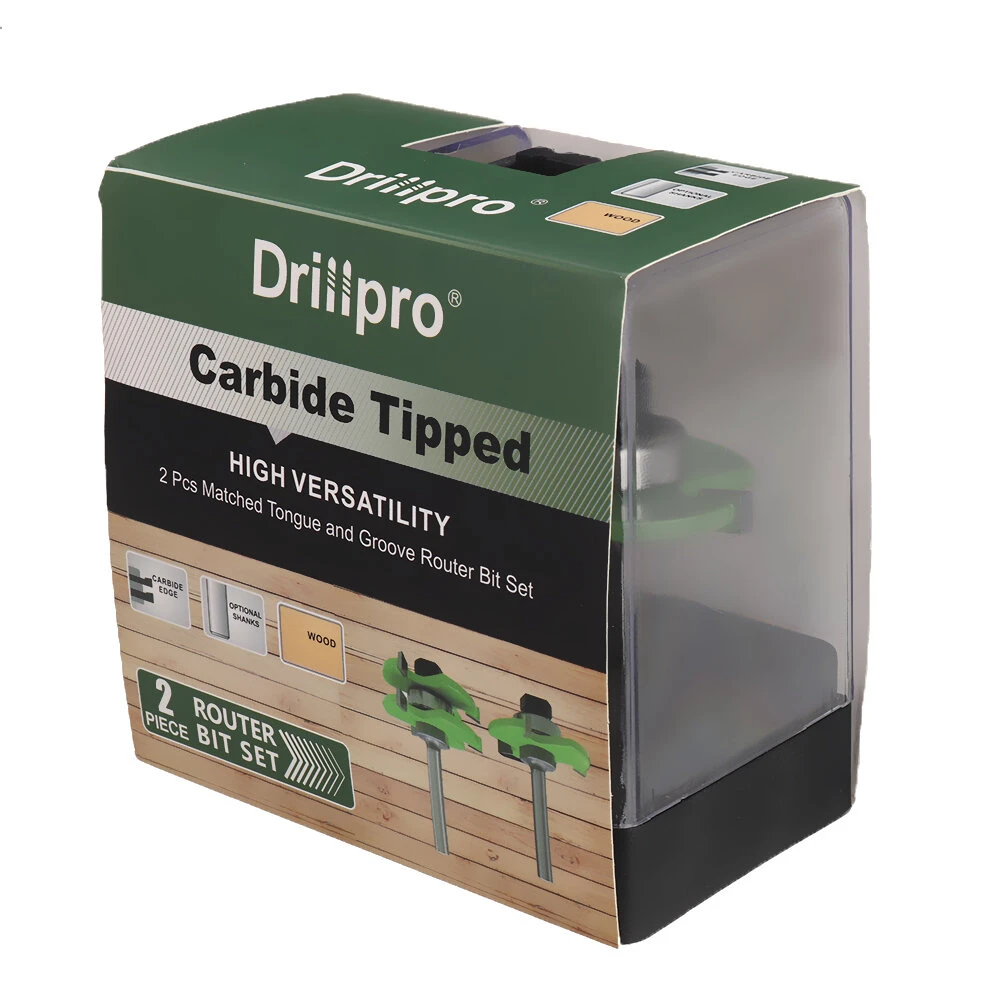 Drillpro 2pcs 1/2 or 1/4 inch Shank Tongue and Grooving Router Bit Set 3-Tooth T-Shape Adjustable Milling Cutter