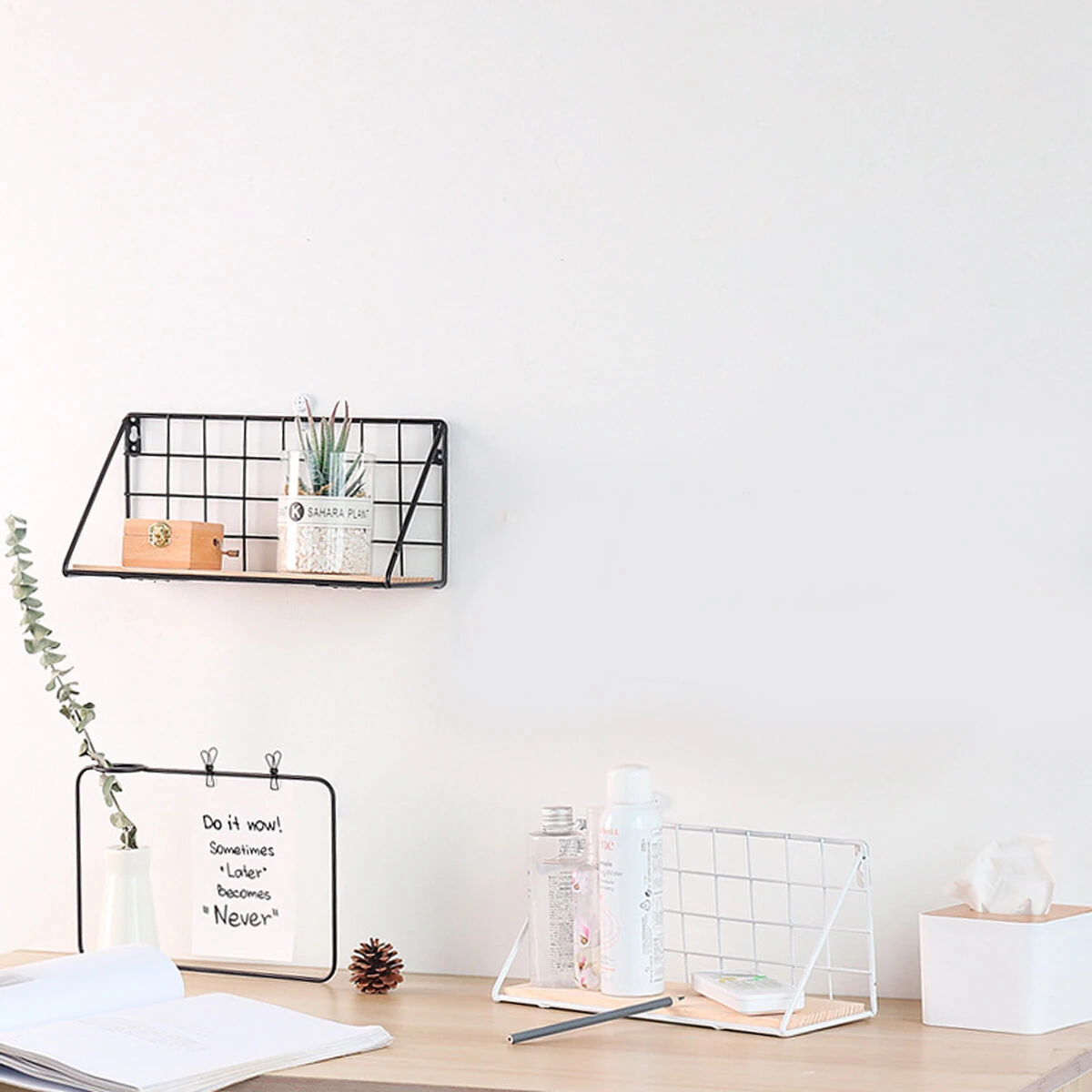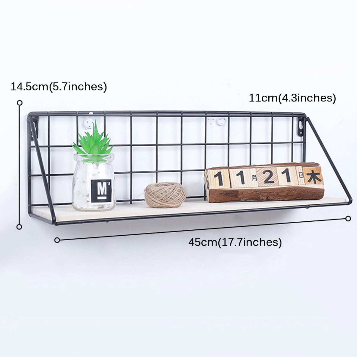 – Hanging ironwork wooden shelves, using ironwork material, into the wood material, hollow-out design, handmade, after a number of processes made, can be free to put small decorations.