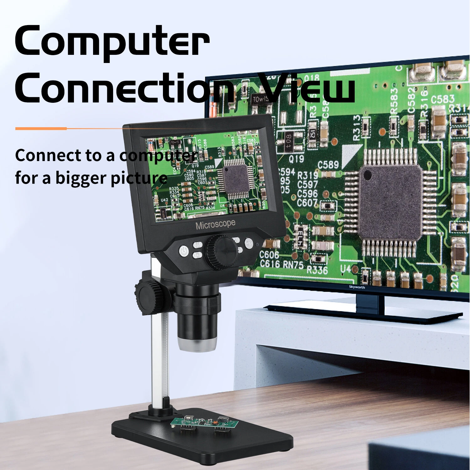 G1000 1-1000X 5.5 Inch HD Portable 8 LED LCD Digital Electron Microscope Soldering Microscope Phone Motherboard Repair Endoscope Magnifier Camera + Adjustable Metal Stand With Battery