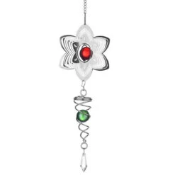 3D Metal Hanging Wind Spinner Wind Chime With H Elix Tail Glass Ball Center Decorations