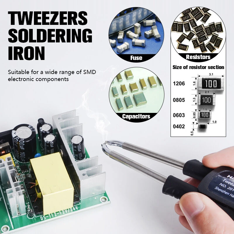1 X SMD Tweezer Soldering Iron Handle with 2 Tips