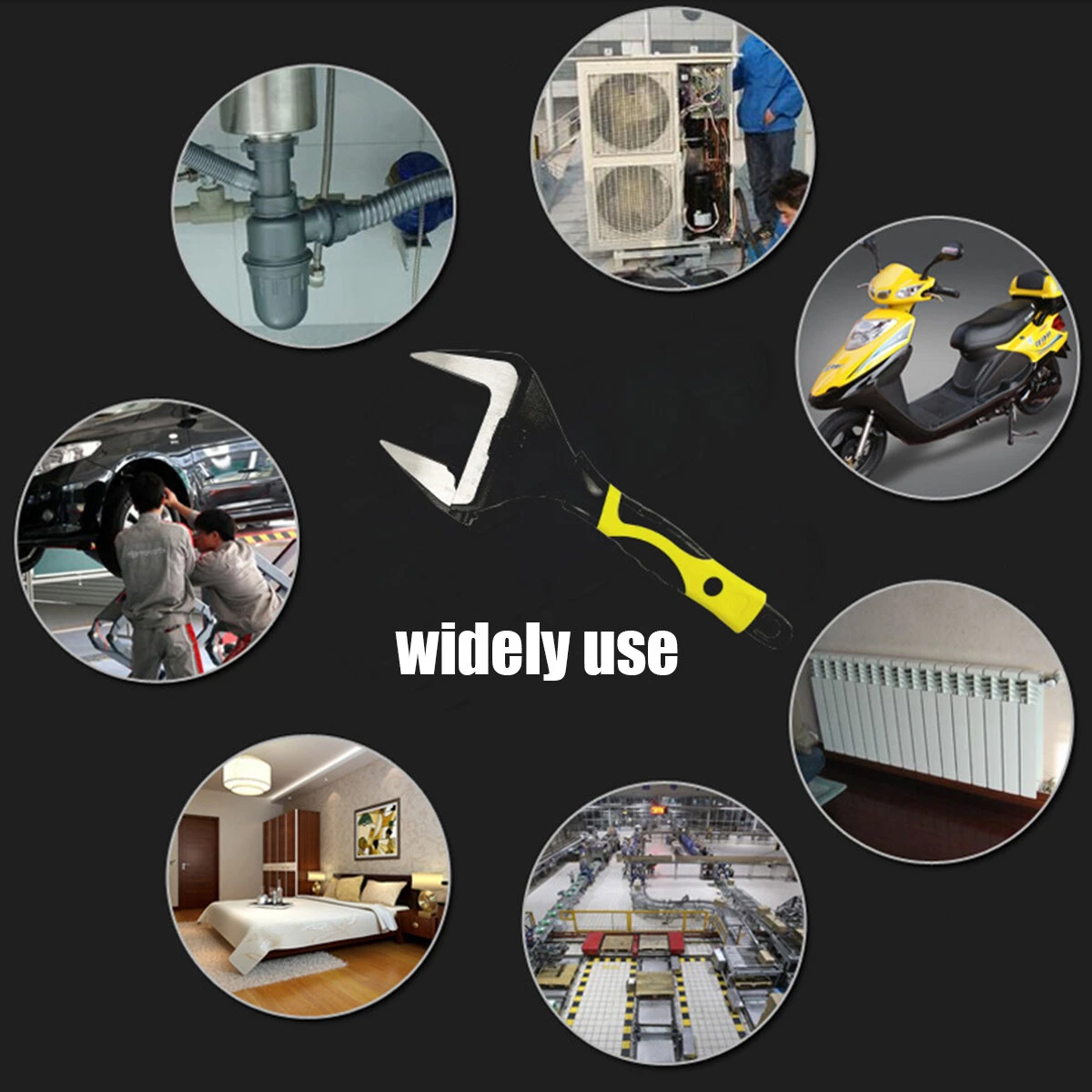 Large Extra Wide Jaw Adjustable Spanner Wrench Openning Capacity Nut Pipe Tool