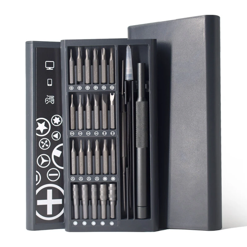 Precision Screwdriver SetMulti-magnetic driver Specially used for electronic equipment products.This screwdriver set includ phillips, pentalobe, torx,hex, triangle, and other sizes.It has a wide range of applications.
