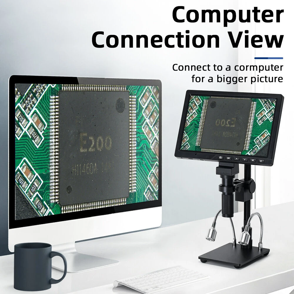 Mustool -1090 10.1 inch LCD HD Video Microscope with 150X C Mount Lens Electronic Microscope Camera with Metal Stand Professional repair Tools