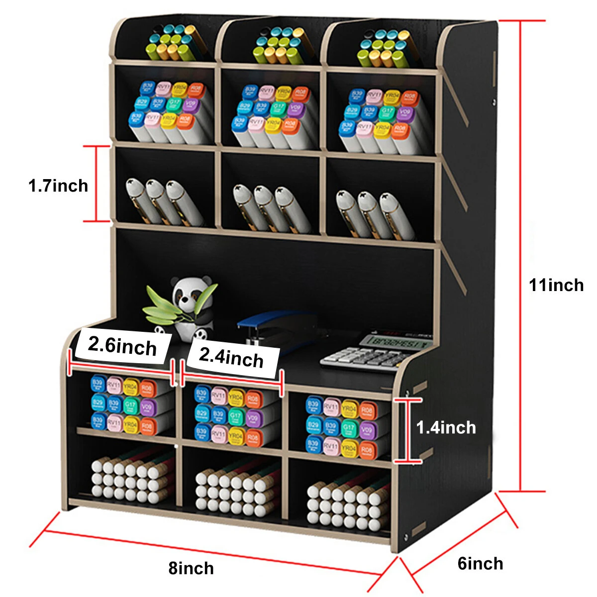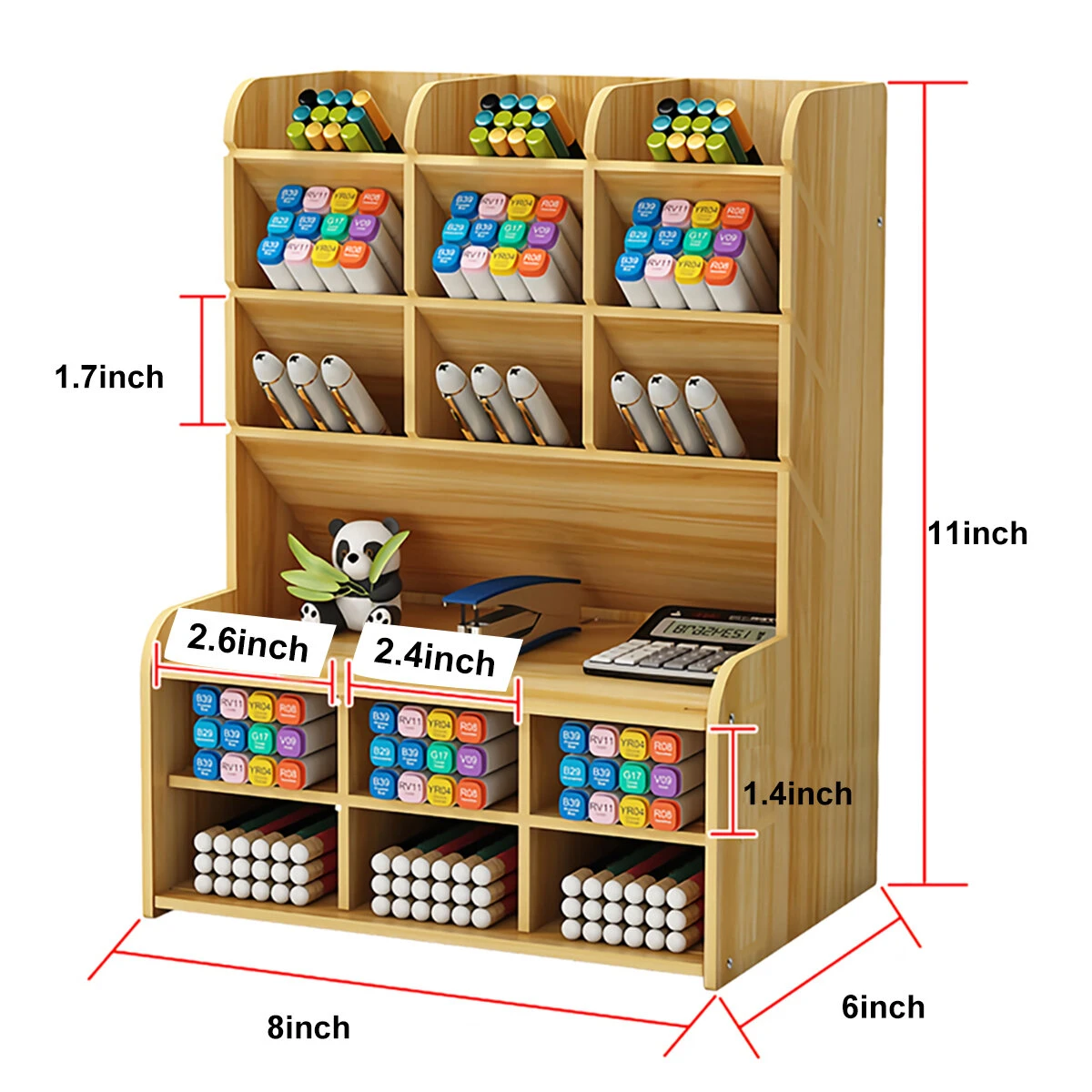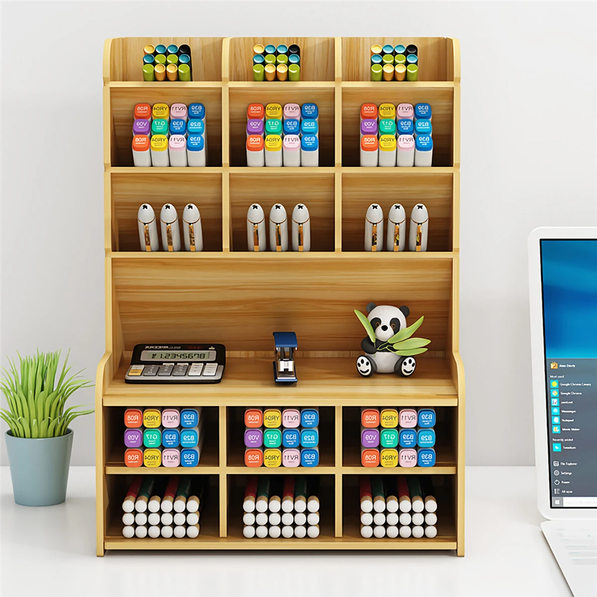 Pen Holder Storage Box Wood Pencil DIY Desktop Container Studentsk Case Rack