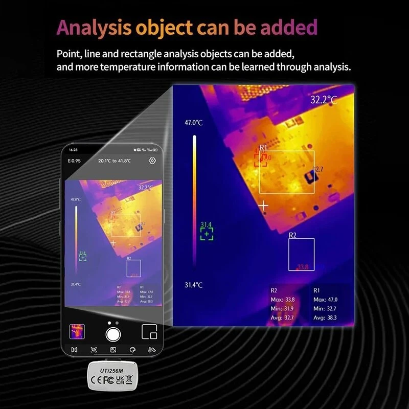 UTi256M is a professional thermal camera module for smartphones, which is compact, portable, and easy to operate through connecting with mobile phones. It’s 256×192 IR resolution provides clear image with a fast response. UTi256M is with wide temperature measurement range -20℃ ~ 200℃. Users can troubleshoot HVAC problems or investigate heat source issues around the house and hidden issues faster and easier with this thermal camera module. It is a perfect tool for DIY homeowners,outdoor lovers, engineers, contractors and builders, etc.