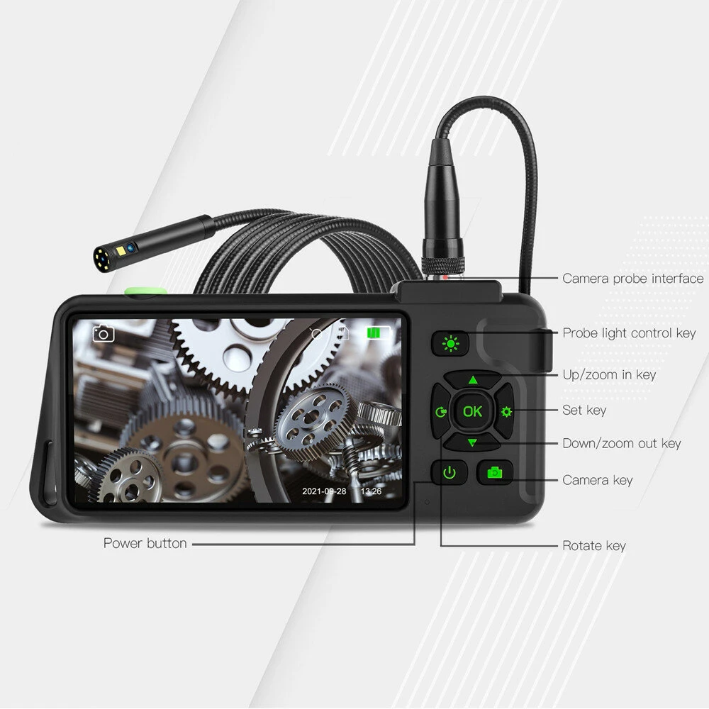 VISHRT 7.9mm Dual Lens 4.5-inch IPS Color Screen Industrial Borescope Waterproof Inspection Camera 3.5/5/10M Rigid Cable